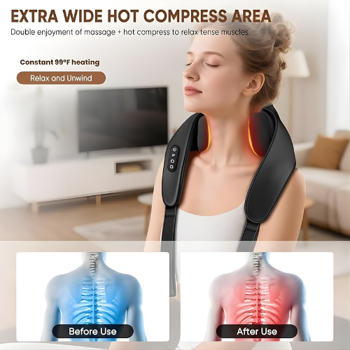 No solo alivia la tensión; rejuvenece todo tu cuello y hombros, ayudándote a relajarte más rápido y sentirte mejor por más tiempo.